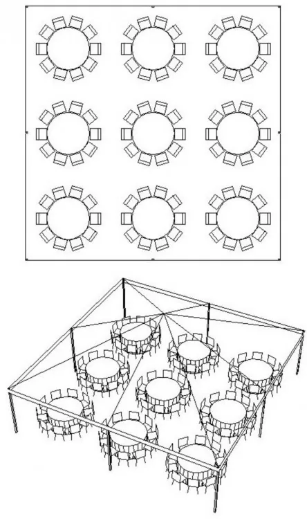 A roomy, weather-ready 30x30 frame tent—perfect for outdoor events where you need a clean, sturdy shelter without center poles in the middle of the space. This tent uses a metal frame to support a durable canopy, creating a 900-square-foot covered area ideal for dining layouts, dance floors, vendor booths, or ceremony seating. Because it’s a frame-style tent, it can be set up on grass, pavement, or other surfaces and offers a smooth interior profile that makes arranging tables, chairs, or staging simple and flexible. Thoughtfully designed for rentals, it provides reliable protection from sun and light rain while giving your event a neat, professional look.