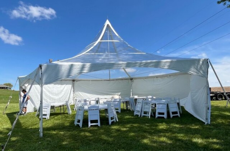 A spacious 40-foot hexagon clear-top tent β a striking, weatherproof shelter that combines architectural elegance with practical coverage. The six-sided design creates a roomy, open interior ideal for weddings, receptions, corporate gatherings, or upscale outdoor events. The clear top lets in natural light and offers a skyward view while still protecting guests and dΓ©cor from sun, wind, or light rain. With generous floor area and unobstructed sightlines from the center, this tent accommodates tables, a dance floor, staging, or lounge seating with flexibility for varied layouts. Durable, rental-ready construction makes it suitable for short-term installations on lawns, patios, or paved surfaces; it pairs easily with lighting, drapery, heating, cooling, or flooring options to match the eventβs style and comfort needs. Simple yet sophisticated, the 40β hexagon clear-top tent turns any outdoor space into an elegant event setting.