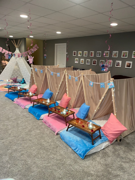 Slumber party theme - GrinchSlumber Party Tent:Slumber party theme - Grinch1Elevate your next sleepover with a twist—our Slumber Party Theme - Grinch rental kit sets the scene with playful decor and quirky accents inspired by the infamous green mischief-maker. Perfect for turning an ordinary gathering into an unforgettable, fun-filled celebration. Slumber party theme - Lilo and StitchSlumber Party Tent:Slumber party theme - Lilo and Stitch1Step into a tropical sleepover adventure with the Slumber Party Theme – Lilo and Stitch rental. This immersive setup blends island vibes and playful decor to transform any sleepover into a fun-filled, memorable night of adventure and chill.