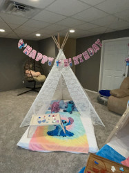 Transform any room into a cozy wonderland with the Slumber Party Tent rental. This charming setup provides a snug and whimsical haven for nighttime adventures, perfect for sleepovers! Kids and teens will delight in this enchanting shelter, offering a safe spot for storytelling, games, and late-night snacks. The Slumber Party Tent is your ticket to a night filled with giggles and unforgettable memories.