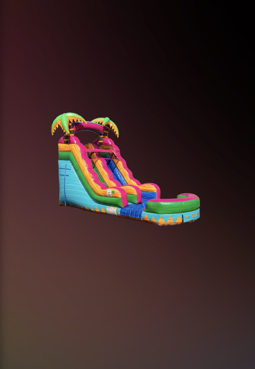 The Island Breeze is the perfect way to bring tropical fun to any event. Standing 15 feet tall with two side-by-side lanes, this vibrant slide lets guests race each other all the way to the splash landing. Bright island colors, palm-tree accents, and a smooth sliding surface make it a crowd favorite for kids, teens, and adults.